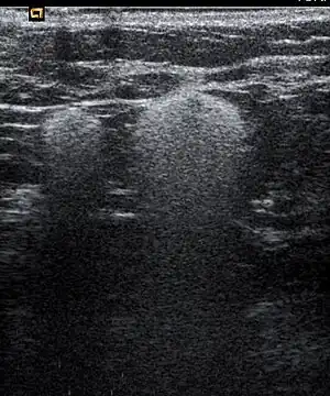 - ↑ García Callejo, F. J.; Calvo González, J; Agustí Martínez, J; Bécares Martínez, C; Monzó Gandía, R; Marco Algarra, J (2013). "Neck lymphadenitis due to silicone granuloma after mammary implants". Acta Otorrinolaringológica Española. 64 (3): 217–22. doi:10.1016/j.otorri.2012.12.003. PMID 23499209.