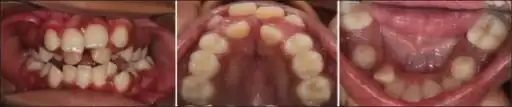 • Triangular face with a small jaw and a pointed chin that tends to lessen slightly with age. The mouth tends to curve down