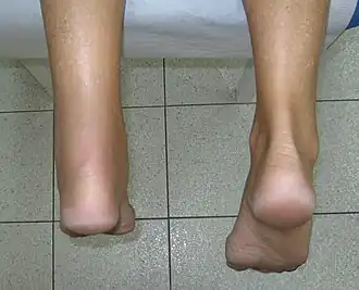 The Thompson test (also called Simmonds' test or Simmonds-Thompson test) is used in lower limb examination to test for the rupture of the Achilles tendon.[1][2] The patient lies face down with feet hanging off the edge of the bed. If the test is positive, there is no movement of the foot (normally plantarflexion) on squeezing the corresponding calf, signifying likely rupture of the Achilles tendon.[3]