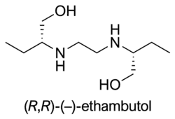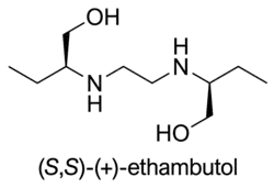 • Ethambutol: Whereas the (S,S)-(+)-enantiomer is used to treat tuberculosis, the (R,R)-(–)-ethambutol may cause blindness.[20]