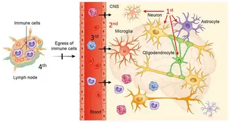 - ↑ Behrangi, Newshan; Fischbach, Felix; Kipp, Markus (January 2019). "Mechanism of Siponimod: Anti-Inflammatory and Neuroprotective Mode of Action". Cells. 8 (1): 24. doi:10.3390/cells8010024. ISSN 2073-4409.