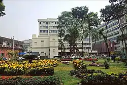Mitford Hospital, one of the largest hospitals in Bangladesh, is located adjacent to the college campus. It occupies an oblong area of about 12.8 acres of land on the bank of Buriganga river.[14] The hospital complex comprises more than fourteen buildings, most of which were originally single-storied and later have been raised to multiple storeys. With gradual expansion since its initial foundation, the campus comprises a mix of buildings depicting both modern and colonial architecture.[14]