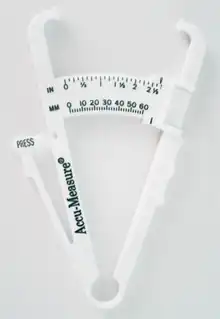 - ↑ Zonatto HA, Ribas MR, Simm EB, Oliveira AG, Bassan JC (Oct–Dec 2017). "Correction equations to estimate body fat with plicometer WCS dual hand". Research on Biomedical Engineering. 33 (4): 285–292. doi:10.1590/2446-4740.01117. In this paper the terms "skinfold caliper" and "plicometer" are used interchangeable, as in the description of Table 2