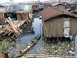 Similarly, some of the slums of Lagos, Nigeria sprouted because of neglect and policies of the colonial era.[80] During apartheid era of South Africa, under the pretext of sanitation and plague epidemic prevention, racial and ethnic group segregation was pursued, people of colour were moved to the fringes of the city, policies that created Soweto and other slums – officially called townships.[81] Large slums started at the fringes of segregation-conscious colonial city centers of Latin America.[82] Marcuse suggests ghettoes in the United States, and elsewhere, have been created and maintained by the segregationist policies of the state and regionally dominant group.[83][84]