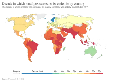 - ↑ Fenner F, Henderson DA, Arita I, Ježek Z, Ladnyi ID (1988). "Chapter 10: The Intensified Smallpox Eradication Programme, 1967–1980" (PDF). Smallpox and Its Eradication. History of International Public Health. Vol. 6. Geneva: World Health Organization. pp. 422–538. ISBN 978-92-4-156110-5. Archived (PDF) from the original on 19 February 2015. Retrieved 23 July 2020.