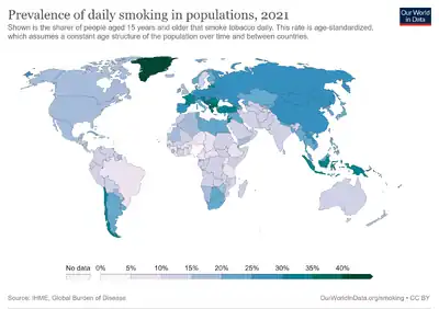- ↑ CDC's Office on Smoking and Health. "CDC – Fact Sheet – Adult Cigarette Smoking in the United States – Smoking & Tobacco Use". Smoking and Tobacco Use. Archived from the original on 2017-06-29. Retrieved 2017-06-29.