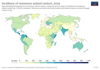 - ↑ "CDC - Venomous Snakes - NIOSH Workplace Safety and Health Topic". CDC.gov. 1 July 2016. Archived from the original on 18 July 2022. Retrieved 7 July 2016.