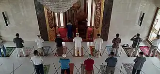 Various alternatives have been proposed for the tradition of handshaking. The gesture of namaste, placing one's palms together, fingers pointing upwards, drawing the hands to the heart, is one non-touch alternative. During the COVID-19 pandemic in the United Kingdom, this gesture was used by Prince Charles upon greeting reception guests, and has been recommended by the Director-General of the WHO, Dr. Tedros Adhanom Ghebreyesus, and Israeli Prime Minister Benjamin Netanyahu.[41] Other alternatives include the popular thumbs up gesture, the wave, the shaka (or "hang loose") sign, and placing a palm on one's heart, as practiced in parts of Iran.[41]