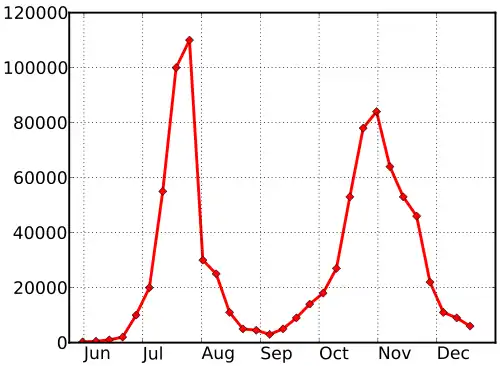 The 2009 swine flu pandemic caused social distancing to rise in popularity, most notably in Mexico, with the country's Ministry of Health advising people to avoid handshakes and kissing as ways of greeting people.[89] A mandatory nationwide school closure enacted in Mexico, which lasted for 18 days from late April 2009 to early May 2009, was a form of social distancing aimed at reducing the transmission of Swine flu.[90] A study from 2011 found the mandatory nationwide school closure and other forms of social distancing in Mexico were effective at reducing influenza transmission rates.[90]