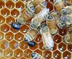 - ↑ Baracchi, David; Fadda, Antonio; Turillazzi, Stefano (December 2012). "Evidence for antiseptic behaviour towards sick adult bees in honey bee colonies". Journal of Insect Physiology. 58 (12): 1589–1596. Bibcode:2012JInsP..58.1589B. doi:10.1016/j.jinsphys.2012.09.014. hdl:2158/790327. PMID 23068993. S2CID 38872403.