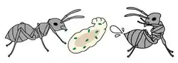- ↑ Tranter, C.; Graystock, P.; Shaw, C.; Lopes, J. F. S.; Hughes, W. O. H. (13 December 2013). "Sanitizing the fortress: protection of ant brood and nest material by worker antibiotics" (PDF). Behavioral Ecology and Sociobiology. 68 (3): 499–507. doi:10.1007/s00265-013-1664-9. S2CID 1531677.
