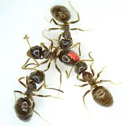 - ↑ Mersch, D. P.; Crespi, A.; Keller, L. (18 April 2013). "Tracking Individuals Shows Spatial Fidelity Is a Key Regulator of Ant Social Organization" (PDF). Science. 340 (6136): 1090–1093. Bibcode:2013Sci...340.1090M. doi:10.1126/science.1234316. PMID 23599264. S2CID 27748253.