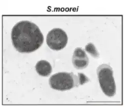 | Transmission Electron Microscopy of S. moorei. Scale bar: 1 µm. | |