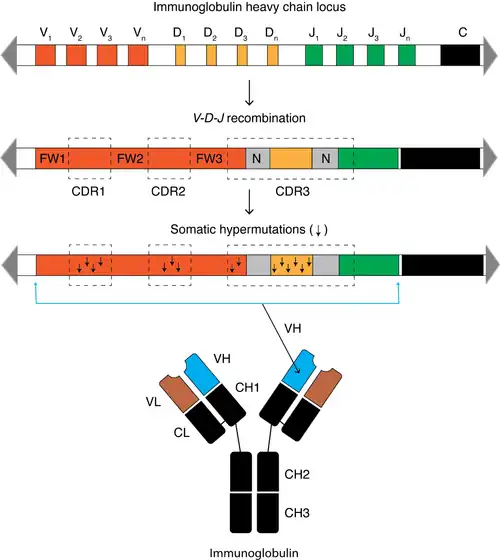 - 1 2 Teng, G.; Papavasiliou, F.N. (2007). "Immunoglobulin Somatic Hypermutation". Annu. Rev. Genet. 41: 107–120. doi:10.1146/annurev.genet.41.110306.130340. PMID 17576170.