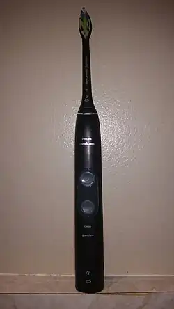 - ↑ Warren, P R; Cugini, M A; Chater, B V; Strate, J (December 2004). "A review of the clinical efficacy of the Oral-B oscillating/rotating power toothbrush and the Philips Sonicare toothbrush in normal subject populations". International Dental Journal. 54 (6). Elsevier: 429–437. doi:10.1111/j.1875-595X.2004.tb00300.x. PMID 15633499.