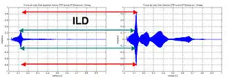 Interaural time difference (ITD) between left ear (top) and right ear (bottom).