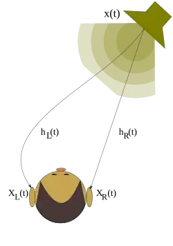 Depending on where the source is located, our head acts as a barrier to change the timbre, intensity, and spectral qualities of the sound, helping the brain orient where the sound emanated from.[5] These minute differences between the two ears are known as interaural cues.[5]