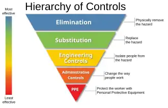 Administrative controls mainly involve people and areas in hospital responsible for TB controls, including training, skin-testing, and regulatory compliance, as well as those responsible for quantifying the amount of TB present in the hospital's community and in-hospital, like staff. To assist with this, OSHA proposed TB guidelines in 1997,[34] but withdrew them in 2003 following the decline of TB.[35]