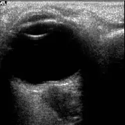 Figure 5: On-orbit ultrasound of posterior orbit of the fourth case of visual changes from long-duration spaceflight. In-flight ultrasound image of the right eye showing posterior globe flattening and a raised optic disc consistent with optic-disc edema and raised ICP.