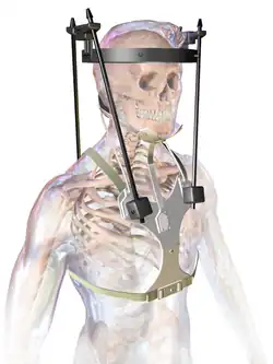 There are multiple devices that can be used in addition to avoiding maneuvers or activities that move the spine.[8][19] Long-term cervical spine immobilization in patients with cervical spine fracture who did not undergo surgery can be performed using a long-term cervical collar (Miami J,[6][8] Philadelphia,[8] or Aspen[8]) or halo traction device.[8][13] When using a traction device such as the halo to hold the spine in place while it heals, this is called closed reduction, as opposed to a surgery which is termed open reduction with internal fixation (ORIF).[19] In general, the halo traction device is preferred for unstable fracture, while the cervical collars are used for neck sprain, stable fracture, or after surgical fixation.[8] Soft cervical collars do not restrict head movement and are more so used for comfort.[8] The sternal occipital mandibular immobilizer (SOMI) can also be used to provide support for cervical spine sprain, stable fracture, or postoperative support.[8]