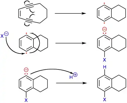 - 1 2 Perrin, Charles L.; Rodgers, Betsy L.; O'Connor, Joseph M. (2007). "Nucleophilic Addition to a p-Benzyne Derived from an Enediyne: A New Mechanism for Halide Incorporation into Biomolecules". Journal of the American Chemical Society. 129 (15): 4795–4799. Bibcode:2007JAChS.129.4795P. doi:10.1021/ja070023e. PMID 17378569.