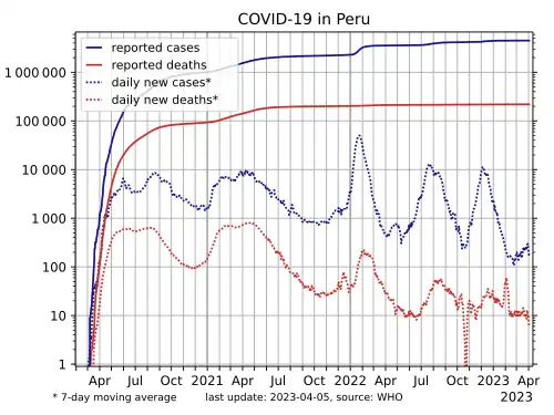 - ↑ "Sala Situacional COVID-19 | DIRESA Cajamarca". Dirección Regional de Salud Cajamarca (in Spanish). 12 June 2022. Archived from the original on 23 May 2022. Retrieved 31 May 2022.