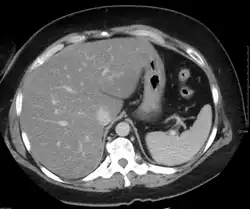 Liver steatosis (fatty liver disease) as seen on CT