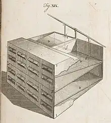 Bad air was thought to be a cause of ill-health and death in the 18th century. Death and disease were common in overcrowded ships and prisons. Hales was one of several people in the early 18th century (other notable inventors being John Theophilus Desaguliers, Mårten Triewald and Samuel Sutton) who developed forms of ventilators to improve air quality.[1] Hales' ventilators were large bellows, usually worked by hand, although larger versions were powered by windmills.[2] They were widely installed in ships, prisons and mines and were successful in reducing disease,[1] and aerating the lower decks of Royal Navy vessels to combat dry rot in the hulls.[26] Hales' ventilators were also used in preserving foods and drying grain.
