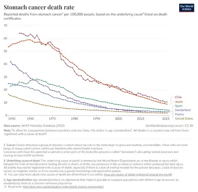 82. Society, Amber Pariona in (11 February 2019). "Countries With The Highest Prevalence Of Stomach Cancer In The World". WorldAtlas. Archived from the original on 16 May 2025. Retrieved 20 August 2025.