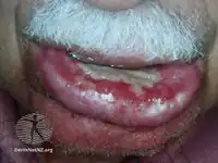 - ↑ 7.00 7.01 7.02 7.03 7.04 7.05 7.06 7.07 7.08 7.09 7.10 7.11 Greenberg MS, Glick M (2003). Burket's oral medicine diagnosis & treatment (10th ed.). Hamilton, Ont.: BC Decker. pp. 60, 61. ISBN 978-1550091861.