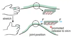 - 1 2 3 Di, Jin; Yao, Shanshan; Ye, Yanqi; Cui, Zheng; Yu, Jicheng; Ghosh, Tushar K.; Zhu, Yong; Gu, Zhen (2015). "Stretch-triggered drug delivery from wearable elastomer films containing therapeutic depots". ACS Nano. 9 (9): 9407–9415. doi:10.1021/acsnano.5b03975. PMID 26258579.