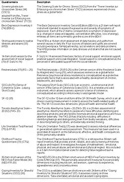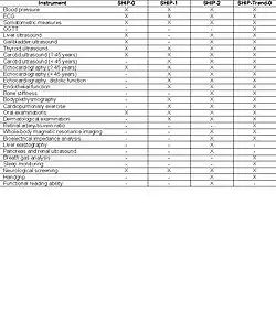 The following table shows all the instruments which are integrated in the SHIP examination.