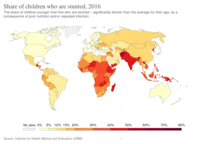 - ↑ Local Burden of Disease Child Growth Failure Collaborators (January 2020). "Mapping child growth failure across low- and middle-income countries". Nature. 577 (7789): 231–234. Bibcode:2020Natur.577..231L. doi:10.1038/s41586-019-1878-8. ISSN 0028-0836. PMC 7015855. PMID 31915393.
