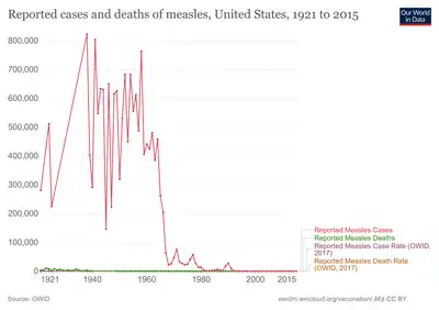 - ↑ 2.0 2.1 2.2 2.3 "Measles - Vaccine Preventable Diseases Surveillance Manual | CDC". www.cdc.gov. 13 May 2019. Archived from the original on 4 August 2020. Retrieved 16 May 2021.
