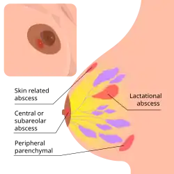 - ↑ Rizzo M, Gabram S, Staley C, Peng L, Frisch A, Jurado M, Umpierrez G (March 2010). "Management of breast abscesses in nonlactating women". The American Surgeon. 76 (3): 292–5. doi:10.1177/000313481007600310. PMID 20349659. S2CID 25120670.