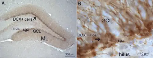 - ↑ Seri, Bettina; García-Verdugo, José Manuel; Collado-Morente, Lucia; McEwen, Bruce S.; Alvarez-Buylla, Arturo (2004). "Cell types, lineage, and architecture of the germinal zone in the adult dentate gyrus". Journal of Comparative Neurology. 478 (4): 359–378. doi:10.1002/cne.20288. PMID 15384070. S2CID 38269066.