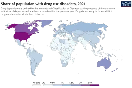 7. 7.0 7.1 7.2 "World Drug Report 2019: 35 million people worldwide suffer from drug use disorders while only 1 in 7 people receive treatment". www.unodc.org. Archived from the original on 2 November 2019. Retrieved 25 November 2019.