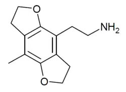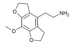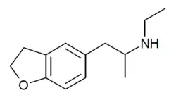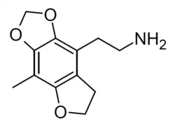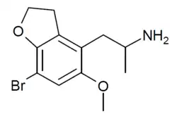 - ↑ Nichols DE, Snyder SE, Oberlender R, Johnson MP, Huang XM (January 1991). "2,3-Dihydrobenzofuran analogues of hallucinogenic phenethylamines". Journal of Medicinal Chemistry. 34 (1): 276–81. doi:10.1021/jm00105a043. PMID 1992127.