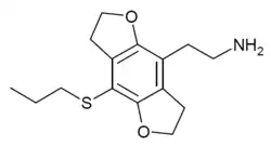 ![]() | 2C-T-7-FLY | 1354633-05-8 | H | H | 2-aminoethyl | 5,6-dihydrofuro[5,6-f] | - | n-propylthio | 2,3-dihydro |