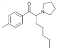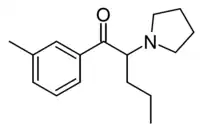 - ↑ Meltzer PC, Butler D, Deschamps JR, Madras BK (February 2006). "1-(4-Methylphenyl)-2-pyrrolidin-1-yl-pentan-1-one (Pyrovalerone) analogues: a promising class of monoamine uptake inhibitors". Journal of Medicinal Chemistry. 49 (4): 1420–32. doi:10.1021/jm050797a. PMC 2602954. PMID 16480278.