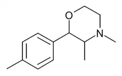 - ↑ Boswell GE (1997). "Synthesis, stereochemistry and anti-tetrabenazine activity of bicyclo analogues of 2-phenylmorpholines". Journal of Heterocyclic Chemistry. 34 (6): 1813–1820. doi:10.1002/jhet.5570340629.