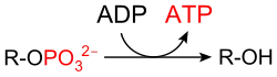 Substrate-level phosphorylation is a metabolism reaction that results in the production of ATP or GTP supported by the energy released from another high-energy bond that leads to phosphorylation of ADP or GDP to ATP or GTP (note that the reaction catalyzed by creatine kinase is not considered as "substrate-level phosphorylation"). This process uses some of the released chemical energy, the Gibbs free energy, to transfer a phosphoryl (PO3) group to ADP or GDP. Occurs in glycolysis and in the citric acid cycle.[1]