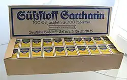 - ↑ One U.S. brand of saccharin uses yellow packets. In Canada, cyclamate is used.