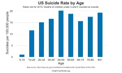 - ↑ "U.S. suicide rate surges to three decade high". Chicago Tribune. April 22, 2016. Retrieved September 14, 2018.