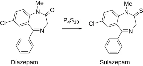 Treatment of diazepam with phosphorus pentasulfide produces the corresponding thionamide, sulazepam.
