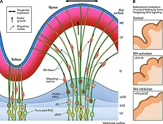 - ↑ Akula, SK; Exposito-Alonso, D; Walsh, CA (18 December 2023). "Shaping the brain: The emergence of cortical structure and folding". Developmental Cell. 58 (24): 2836–2849. doi:10.1016/j.devcel.2023.11.004. PMC 10793202. PMID 38113850.