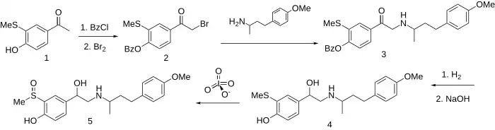 - ↑ DE 2728641, Philion, Richard Everett, "4-Hydroxyphenylalkanolaminderivate und Verfahren zu deren Herstellung [4-Hydroxyphenylalkanolamine derivatives and processes preparation thereof]", published 1978-01-05, assigned to Sterling Drug Inc.
