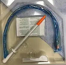 A suprapubic catheter (SPC) is a drainage tube placed into the urinary bladder just above the pubic symphysis.[1] This is generally done for urinary obstruction when other methods are not possible.[1] Other options may include urethral catheterization and intermittent catheterization.[1]
