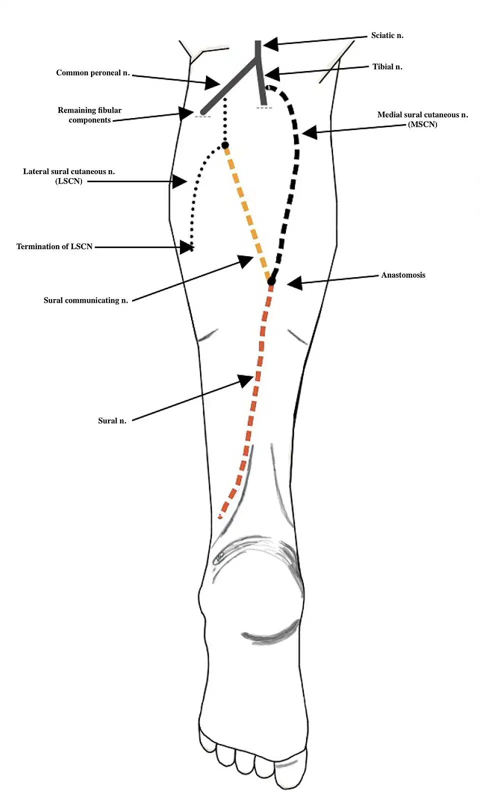 - 1 2 3 4 5 6 Steele, Robert; Coker, Charles; Freed, Blair; Wright, Barth; Brauer, Philip (November 2021). "Anatomy of the sural nerve complex: Unaccounted anatomic variations and morphometric data". Annals of Anatomy. 238 151742. doi:10.1016/j.aanat.2021.151742. PMID 33932499.