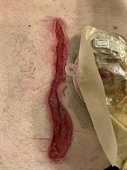 Open mid-line incision with negative-pressure wound therapy vacuum removed